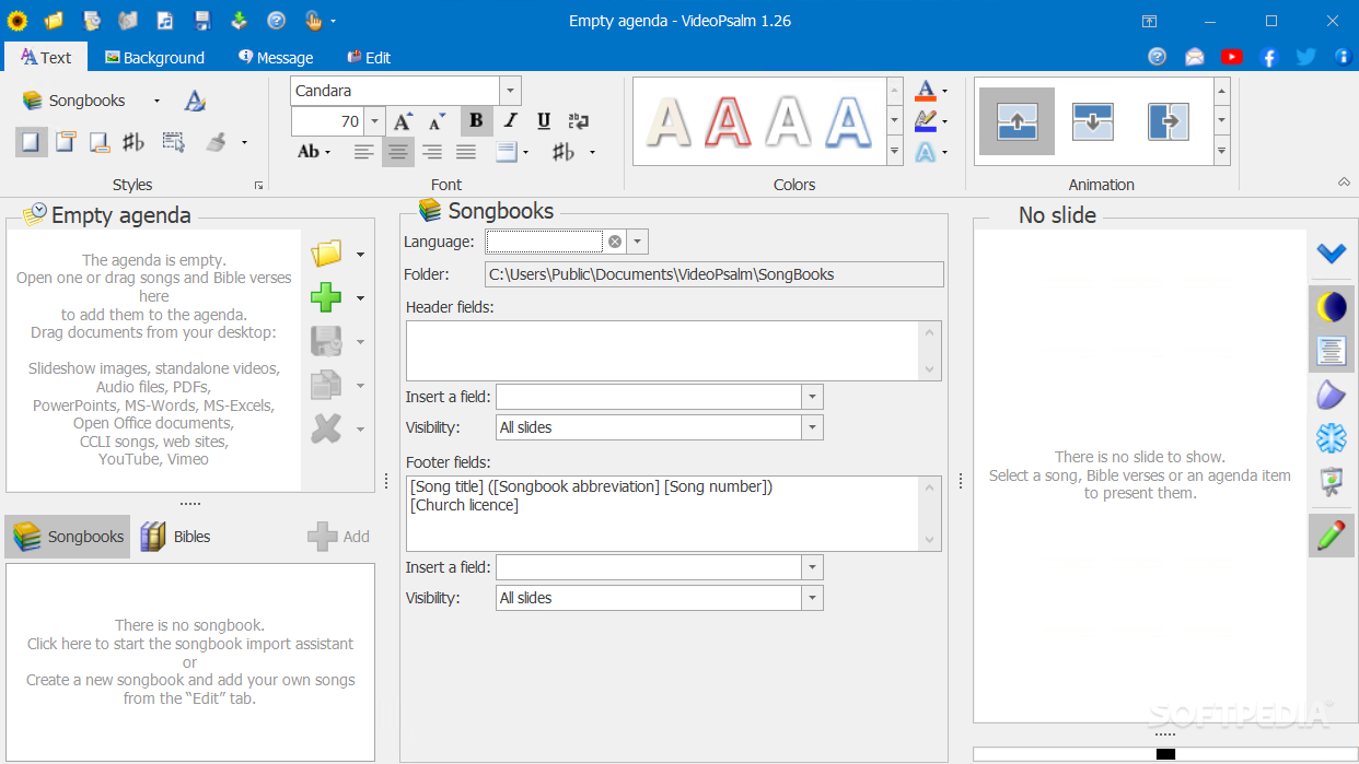 Video Psalm is a free and easy-to-use presentation software I recommend and even use in my local church, it enables you to easily and freely project song lyrics and Bible verses on a screen. Some of the features I love about Video Psalm are that it is very easy to use and also has a good user interface and has most of the features of most presentation software and more, you can also use it to project your camera feed and as a plus, it has various bible translations in the most common languages, including my local Yoruba Bible for free!