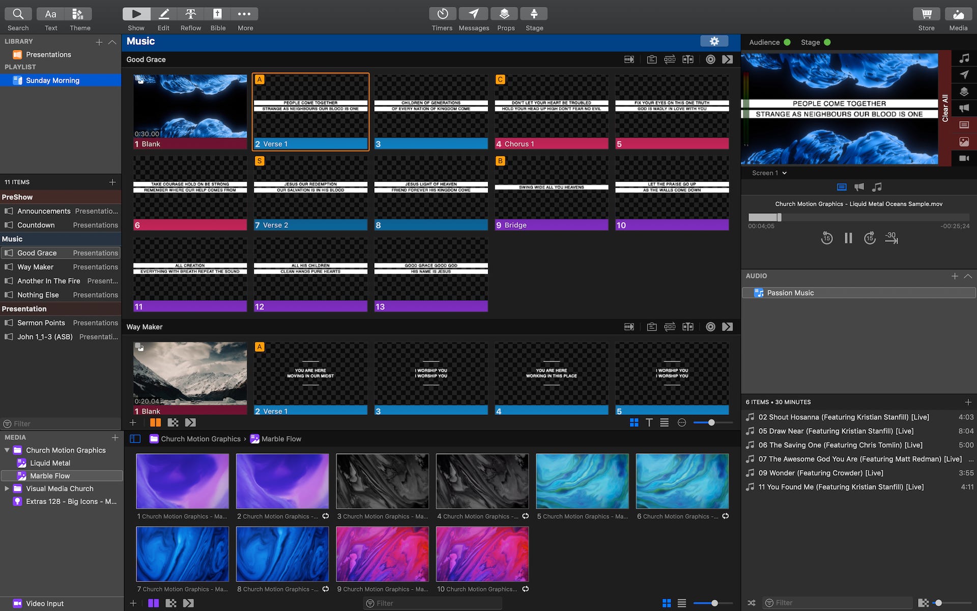 Media Shout is a subscription and open-source church presentation software that enables the display of song lyrics, announcements, Bible passages, and almost any type of media file. The solution includes templates, fire buttons, social media integrations, text formatting, editor/presenter views, a sermon builder, and more.
